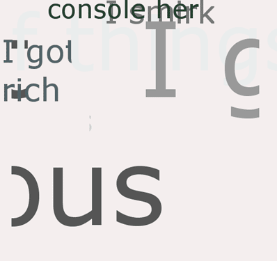 Upstairs in a large atelier they're publishing your new book. Your main interests are pop music, going dancing and wearing Lacostes. You make me feel better about myself. You're thinking again about naked boys. You thought of pushing pieces of notepaper behind the mantelpiece clock. You nabbed a spider. You met your goals more than 2 minutes ago. You are two beautiful women in the sky kissing. Your arms and legs wrap around each other. You seduce your clients.