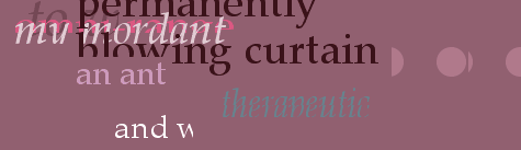 A blind texture pours over adverbs, rocks Is that all you're having for dinner? Eating edge to make it up for more As you advance through security The shadow is busy.