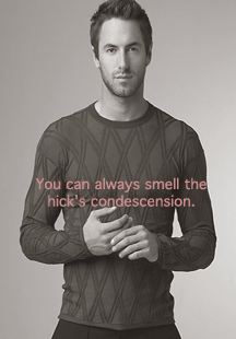 You can always smell the hick's condescension. It precedes the hoised ceremony in the village mind.