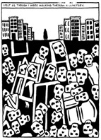 Enfolding silences, a term a fashion writer uses to assign value to Raf Simons's togs for women craving unironic, restrained minimalism, $2000 to 10,000 a pop, could be redirected now to the poetics blogosphere with some accuracy if, at the same time, in eco-absurdist comparison and to null affect. It's obvious the white-heat phase to blogging cooled, and we are in a new period with dust settling on enfolded blogs -- Dale Smith, gone, no Elsewhere, Unicorns & Bunnies shut, Chris Sullivan, kaput, Rue Hazard almost down. These are mammoth silences that create a loss of collective inebriation, self-censorship reinforced by far less blogging from rhesus monkeys we respect and who are still in the game but a little while ago were whipping and posting their lab mates into multiplied frenzy. (You know you were; you know who you are.)